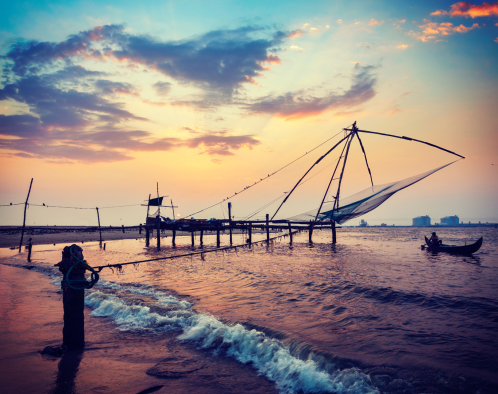 Kochi, in the south Indian state of Kerala, is an idyllic retreat on the Arabian Sea. Serene backwaters, lagoons with feathery coconut palms and picturesque islands make it an attractive tourist destination. Quaint cantilever Chinese fishing nets, the beautiful Malabar Coast and the setting sun make a perfect background for a cruise on the sea. This is one of the finest natural harbours in the world and it was once a major centre of trade and commerce with the Arabs, Chinese, Portuguese, Dutch and the British. We will enjoy a sunset motorboat harbour-cruise with spectacular views.